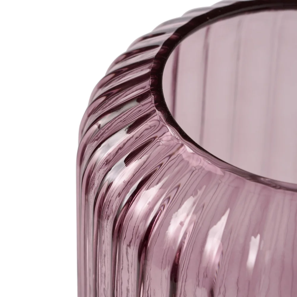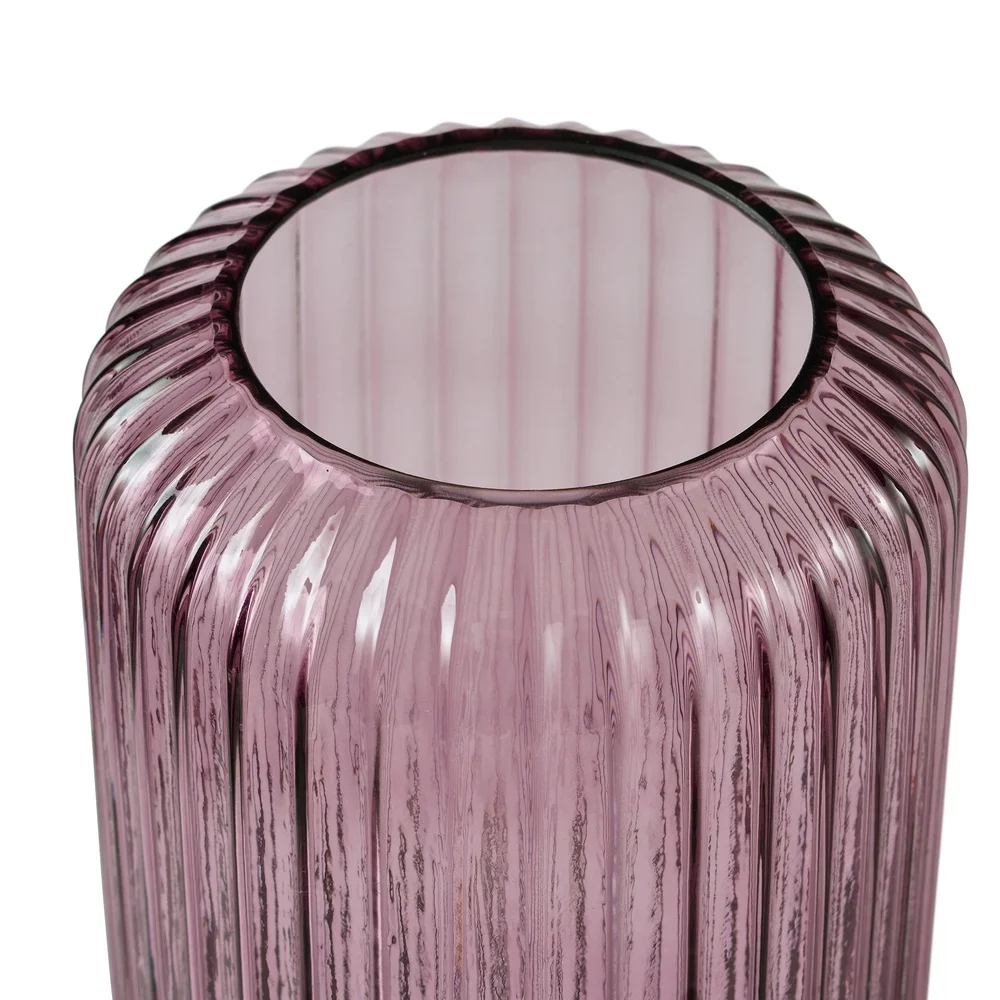 Show off your favorite flowers in style with the 9. 8" Pink Ribbed Cylinder Glass Vase—an effortlessly chic upgrade for your tabletop, counter, shelf, and more. Crafted from high-quality glass, its clear pink hue lets the stems and water take center stage, while the ribbed texture adds a modern, eye-catching detail. Pair it with other vases to craft a striking display with varying heights, colors, and shapes.
