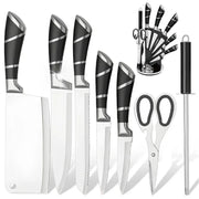 Kitchen Knife Set 9pcs Stainless Steel Sharp Non-Stick Coated Chef Knives with Sharpener for Cutting Slicing Dicing Chopping