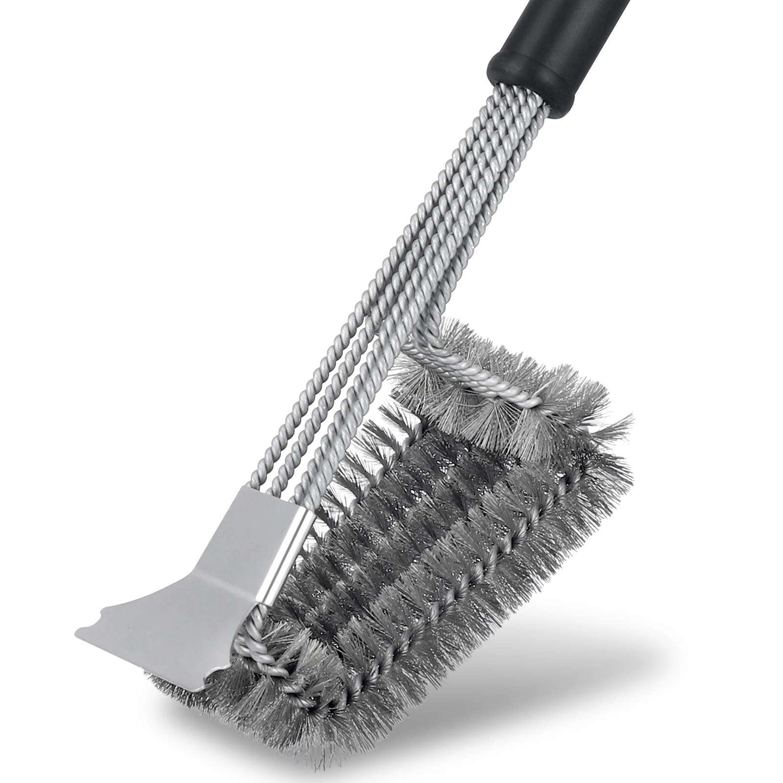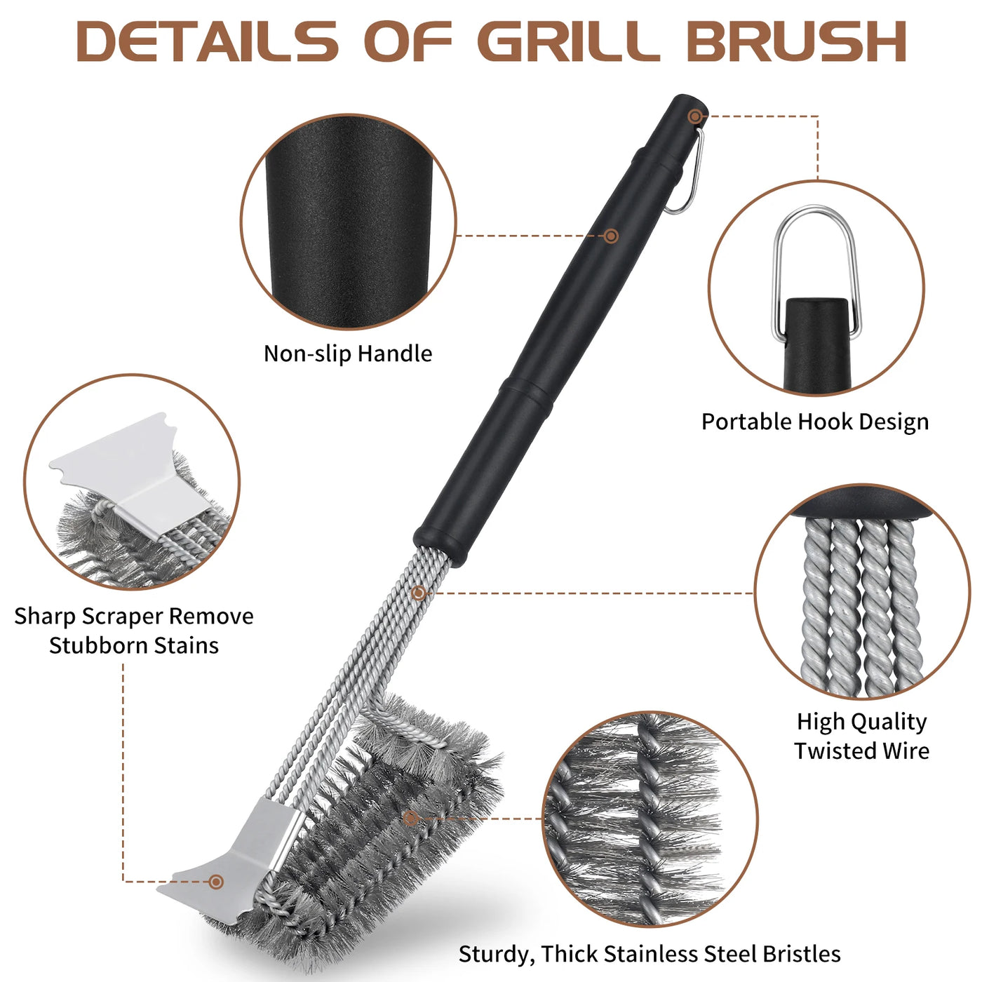 Stainless Steel Grill Brush with Scraper, 19 in Grill Brush for Outdoor Grill, BBQ Brush for Grill Cleaning, Kitchen Accessories