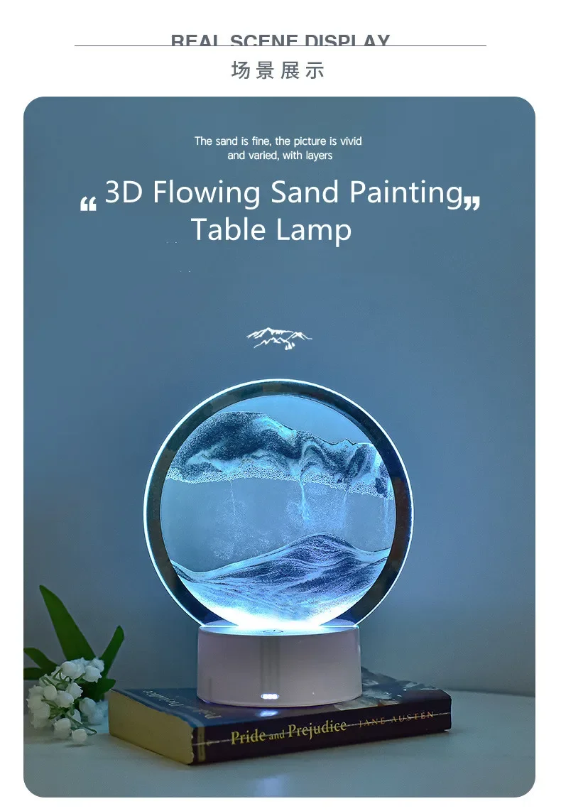 gift atmosphere lamp creative quicksand lamp ornament hourglass sand painting 3d night light decompression table lamp bedside