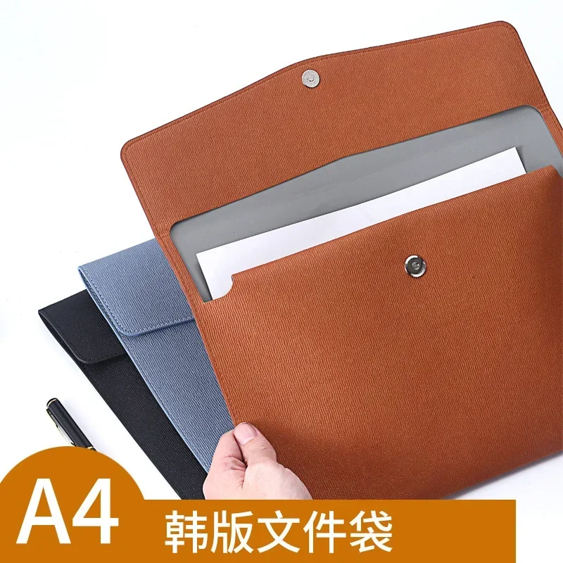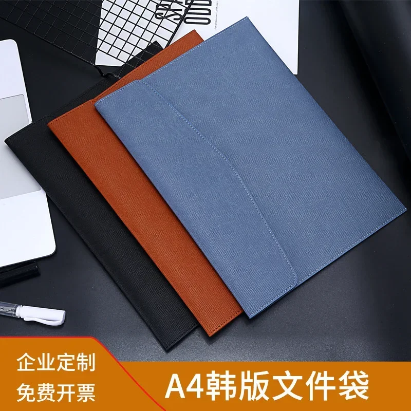 A4 Leather File Folder Large Capacity Document Bag Business Briefcase Magnetic Button Waterproof Laptop Cases Office Organizer