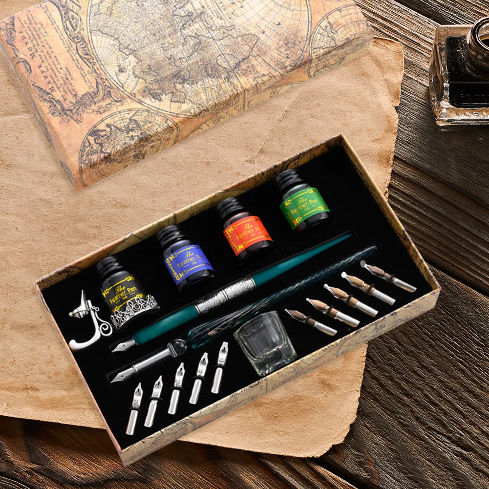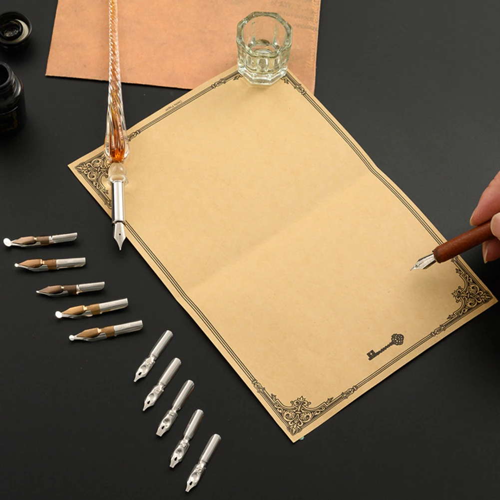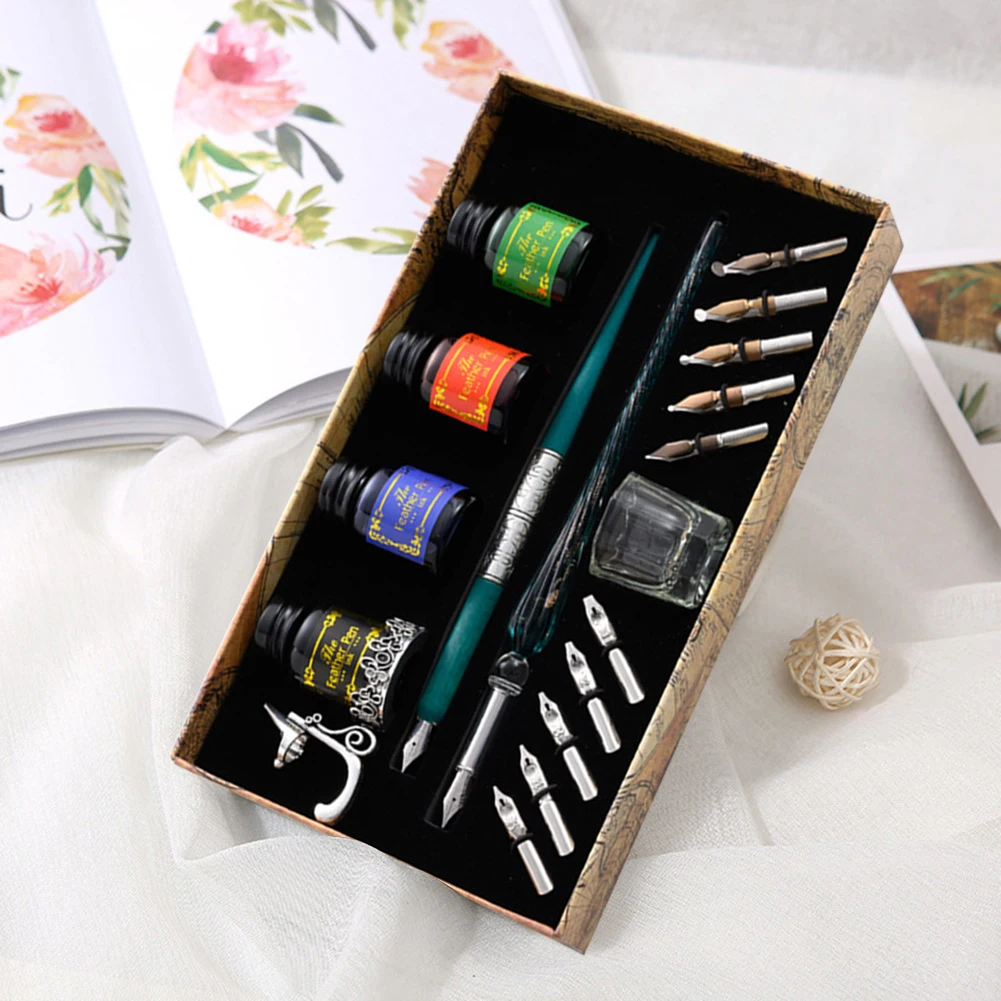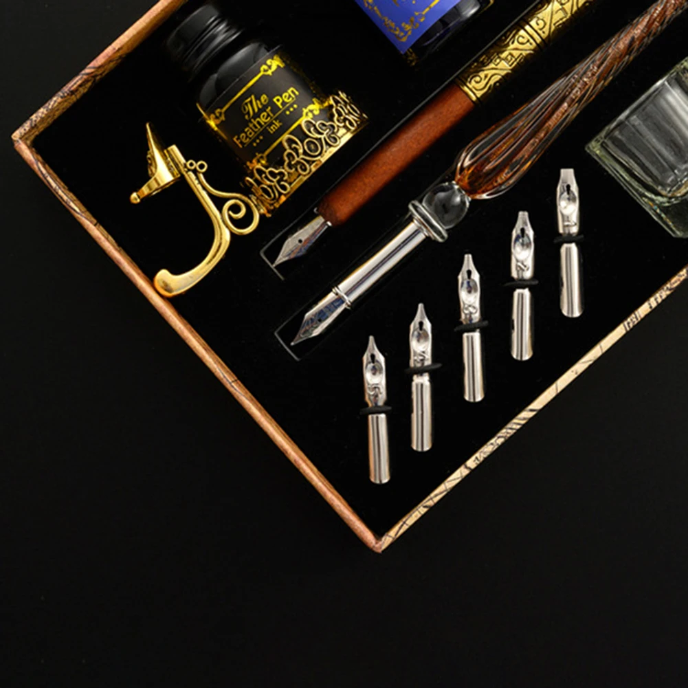 Retro European Star Starry Sky Glass Fountain Dip Pen Set Student English Ink Calligraphy Pen Birthday Stationery Gift