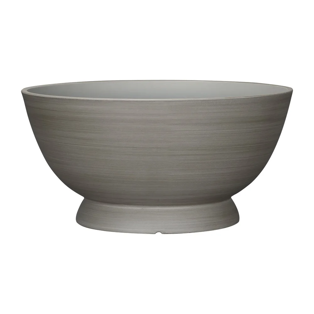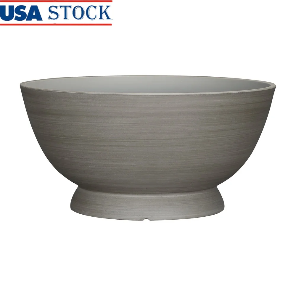 The Gray Sienna Bowl Planter is a beautiful and durable planter for all your plants indoors and outdoors. With its shape and soft Gray color, it shows versatility and classic, timeless sophistication; it has a rich look and feel. It evokes a tranquility in any space within your home, both inside and outside. This planter pot style will fit comfortably into any décor in your living room, bedroom, kitchen, or outside on your porch, patio, or garden. The Gray Bowl Planter style is used for indoor houseplants as well as outdoor gardening. Use it to grow vegetables, herbs, and more. Our pot is made from recycled polypropylene plastic, which makes the pot durable and lightweight. These pots are painted with UV-resistant paint and will not crack or color fade over time. Being made of lightweight and durable plastic, this flowerpot will better withstand breakages and drops. On the bottom are multiple 2-inch "easy to knock out" drainage holes, no drilling required. This allows the water to flow, which can protect the roots and prevent plant stress and root disease. Pots with drainage holes are beneficial for increasing and boosting the life of the potted plant.